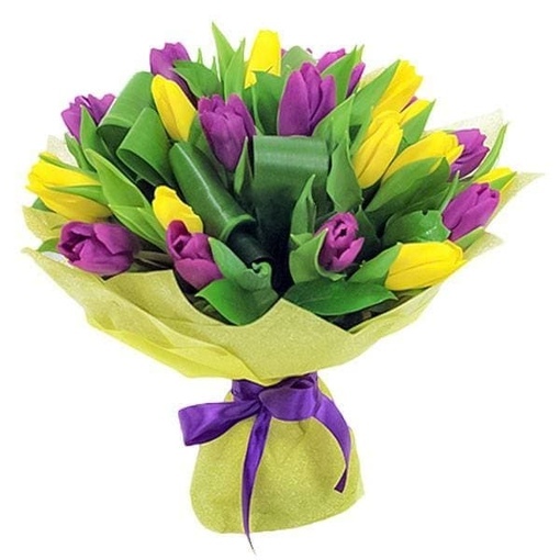 Букет оформляется в красивую упаковку по гармоничности к цветам. Флорист самостоятельно подбирает оформление, поэтому каждый букет получается особенный и неповторимый. Фиолетовые тюльпаны могут отличаться оттенками от нежного до яркого цвета.